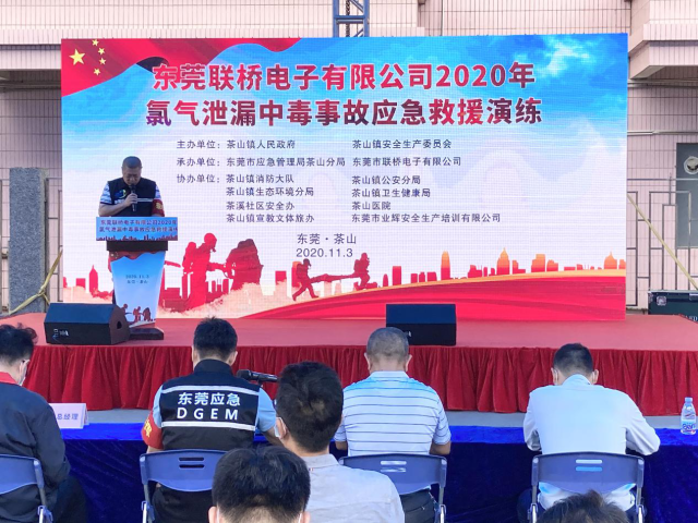 2020年茶山鎮危險化學品生產安全事故應急救援演練 在11月03號下午,為認真貫徹落實"安全第一、預防為主、綜合管理"的安全生產方針,堅持把保障員工生命安全、財產安全、維護經濟社會穩定作為事故預防工作的出發點和落腳點,最大程度地減少因生產事故造成的危害和損失。鎮應急管理分局聯同消防救援大隊、公安分局、生態環境分局、宣教文體辦、衛生健康局茶山醫院等部門以及茶溪小區、東莞聯橋電子有限公司、業輝安全培訓有限公司等相關人員在東莞聯橋電子有限公司開展2020年茶山鎮危險化學品生產安全事故應急救援演練 |